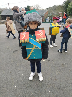 Cette année, le carnaval de l’école Sainte-Anne innove. Chaque enfant devait fabriquer son déguisement à partir d’un gabarit en carton, qu’il devait ensuite décorer à la maison avec de la peinture, du tissus ou d’autres matériaux de récupération… Les enfants ont défilé dans les rues de Saint-Briac pour exposer fièrement leur déguisement aux yeux de tous.